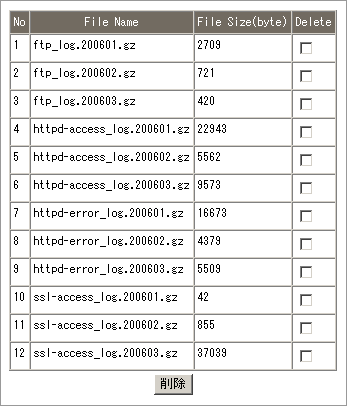 ログは月ごとに GUNZIP(.gz)形式で保管されます。 現在書き込み中のカレントログは削除できません。