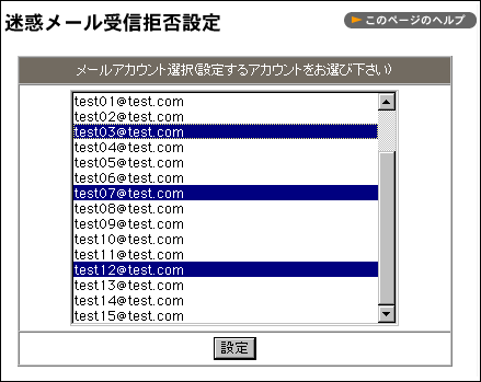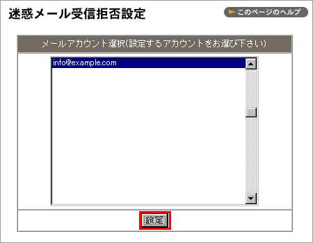 選択したメールアカウントに対して、迷惑メール受信拒否を一括で設定することが可能です。