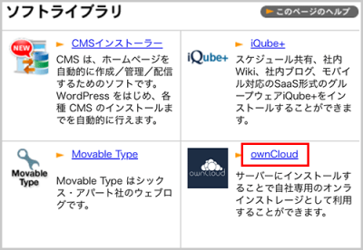 1 コントロールパネルの【ソフトライブラリ】から【ownCloud】をクリックします。