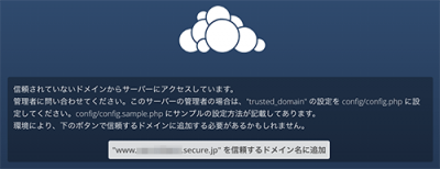 別の URL でご利用する場合の ownCloud の警告表示