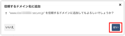 ログイン後、以下のダイアログが表示されますので、【はい】をクリックします。