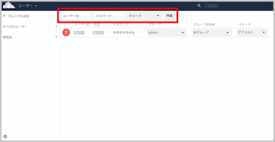 2 ユーザー ID 、パスワードを入力し、追加するグループを選択して「作成」ボタンをクリックします。
