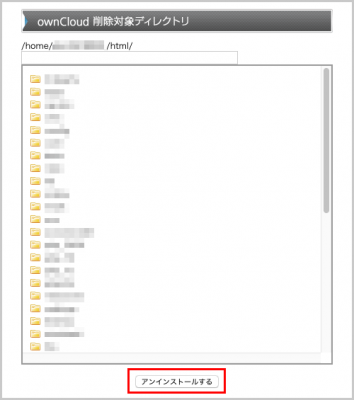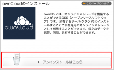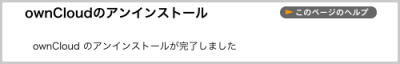 アンインストールを実行しますと、 ownCloud に関連するファイルはすべて削除されます。アンインストール実行後のデータの復旧などはいっさいお受けしておりません。あらかじめご了承ください。