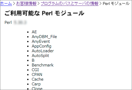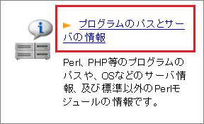 プログラムのパスとサーバーの情報では、Perl 、PHP 等のプログラムのパスや OS などのサーバー情報、および標準以外の Perl モジュールの情報を公開しています。
