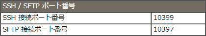 SSH および SFTP のポート番号となります。使用時にご確認ください。