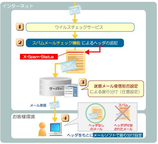 スパムメールチェック機能が導入されることにより、メールの流れは以下のようになります。