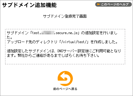 4 サブドメイン登録完了画面が表示されます。