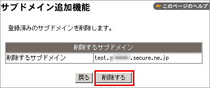 サブドメインの削除