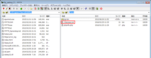 .htaccess ファイルはテキスト形式のファイルであり、FTP ソフトなどでご利用のサーバーにアップロードして利用します。