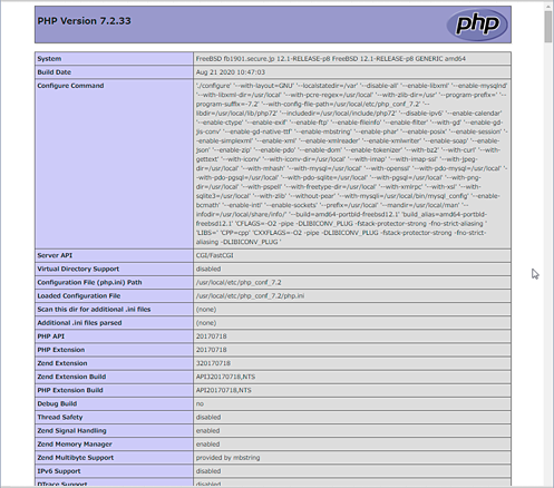 本ページでは、php 7.2.33 の PHP 情報(phpinfo)をウェブ表示させる方法を例にご説明します