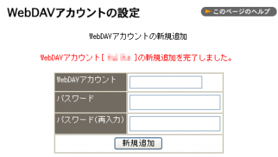 4 アカウントが追加されると【WebDAV アカウント[*****]の新規追加を完了しました。】と表示されます。