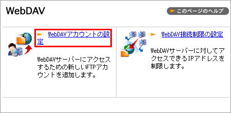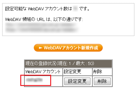 2 【WebDAV アカウント新規作成】ボタンをクリックします。