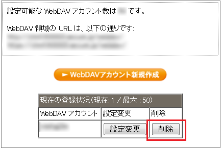 WebDAVアカウントの削除