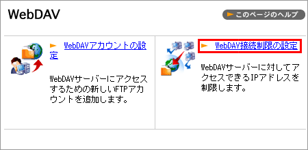 1 コントロールパネルの【FTP/ファイル管理】から【WebDAV 接続制限の設定】をクリックします。