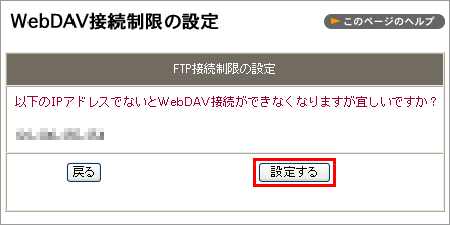4 WebDAV 接続を許可する IP アドレスに間違いがなければ、「設定する」をクリックします。