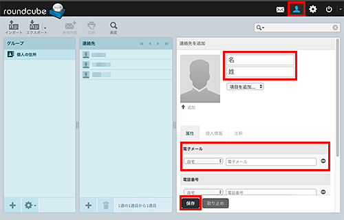 2 必要情報を入力し、【保存】ボタンをクリックすると連絡先にデータが追加されます。