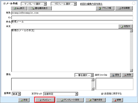 3 【プレビュー】をクリックすると送信前の画面に切り替わります