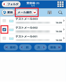 1 対象とする受信メールにチェックを入れて【メール操作】をタップします