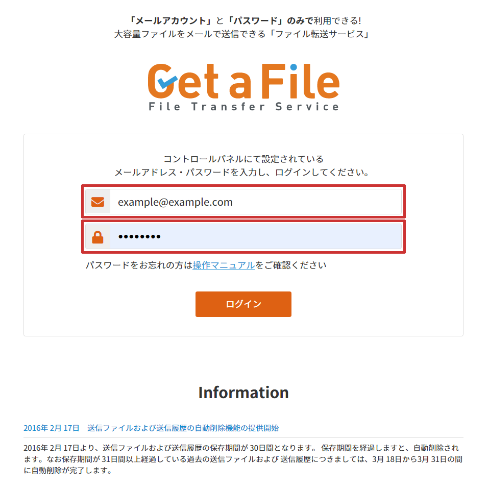 Get a File ログイン画面