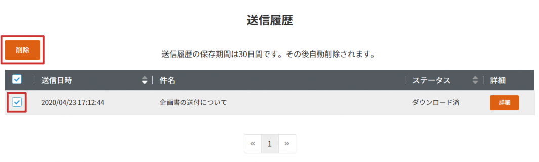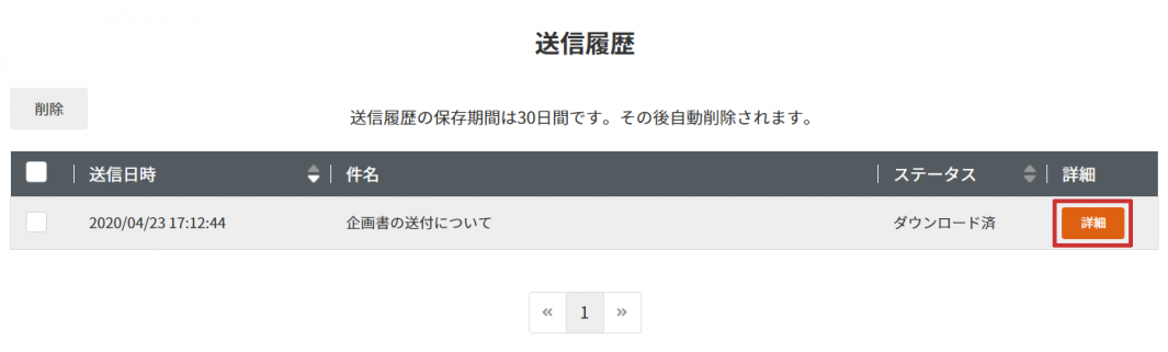 こちらでは、過去に送信した履歴を確認することができます。