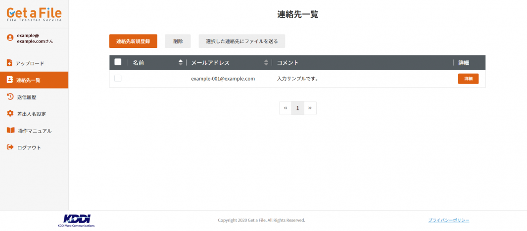 Get a File の「連絡先一覧」画面における操作方法についてご説明します。