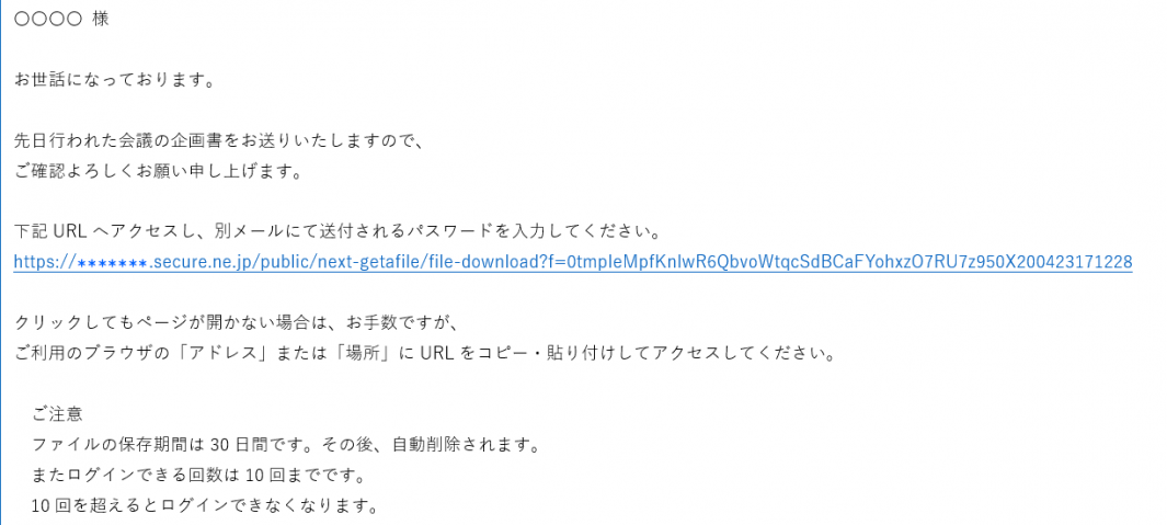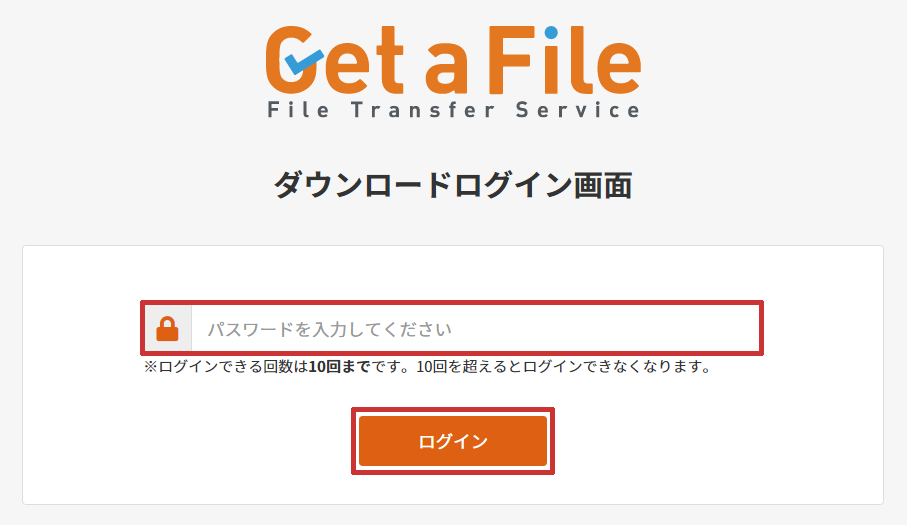 ■「Get a File」で送信したファイルをダウンロードするための URL に 10 回ログインすると、それ以降はログインすることができなくなります。その場合は、再度ファイルを送信していただきますようお願いいたします。