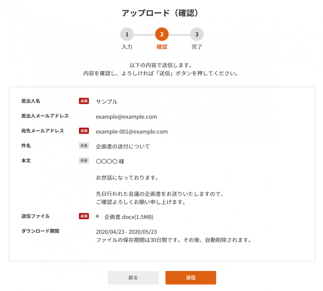 2 画面が【アップロード】へ移り、 ファイルのアップロード の手順で送信を行えます。