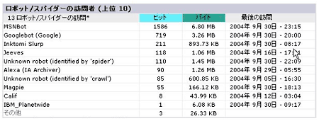 | ロボット/スパイダーの訪問者 | ロボットの訪問数を示します。 |