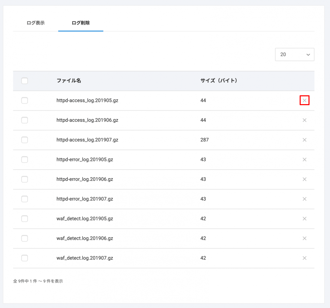 2 削除したいログの【×】(削除)をクリックします