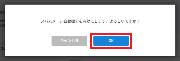 2 「スパムメール自動振分」の【ON / OFF】スイッチをクリックします