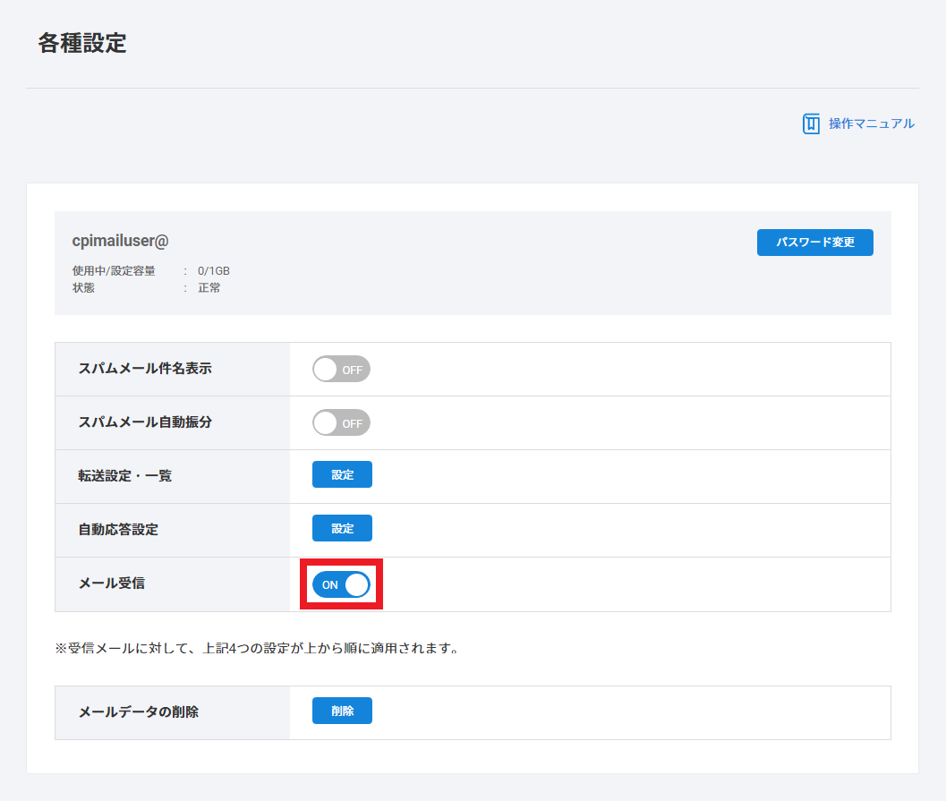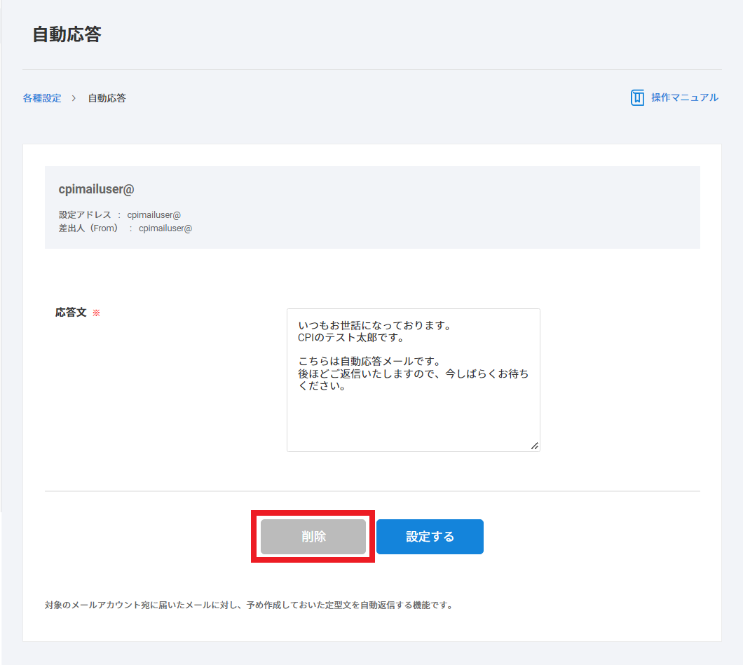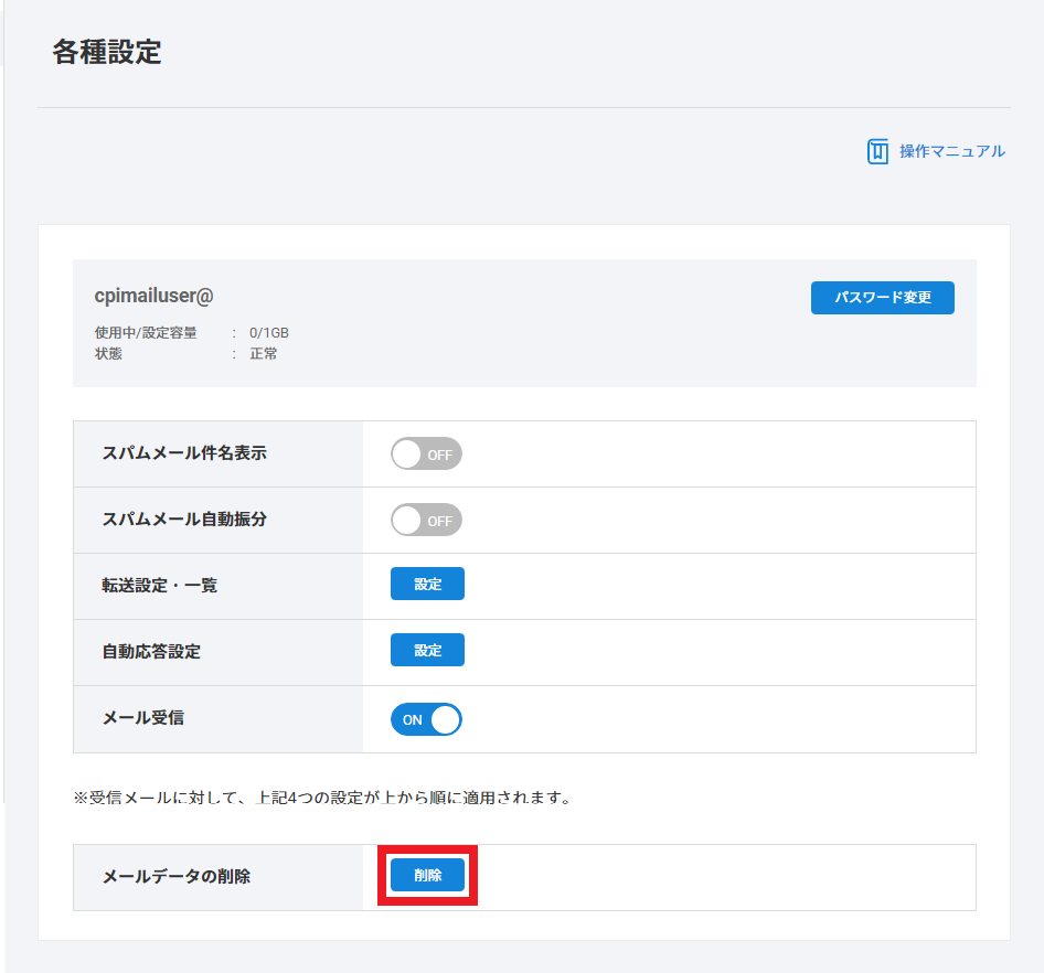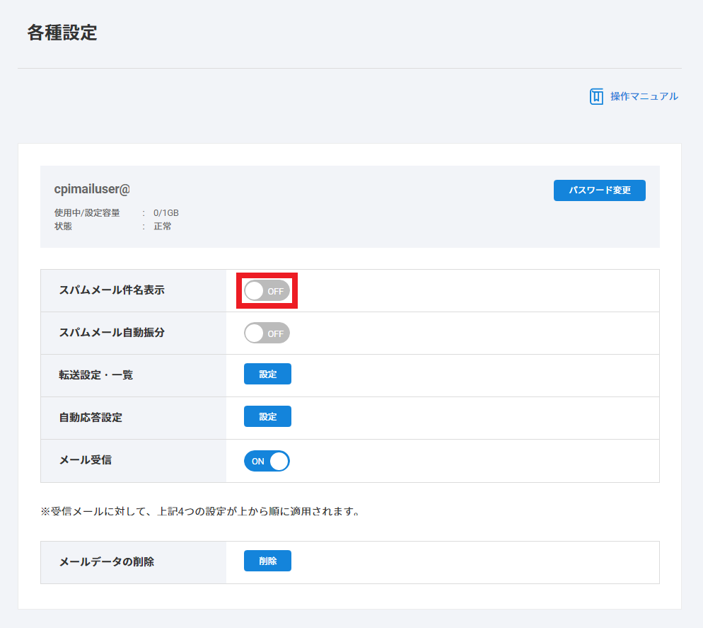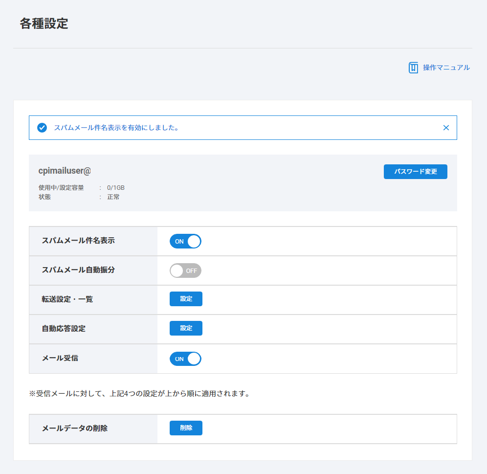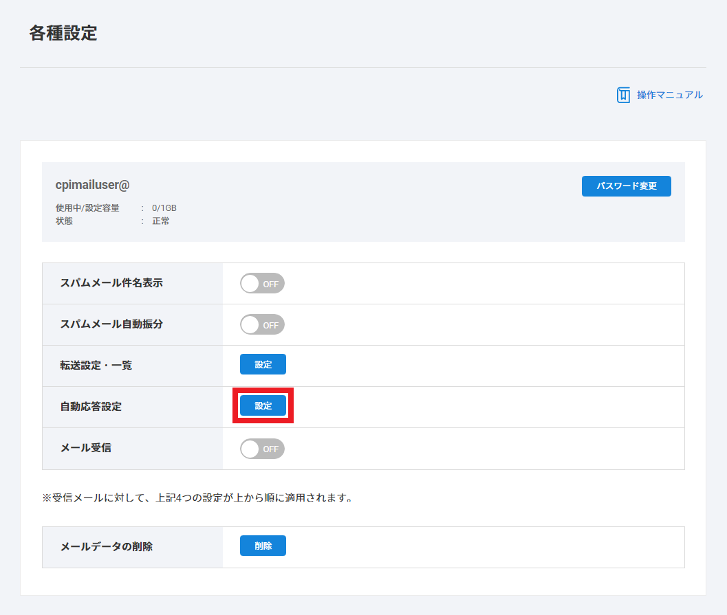 - 当機能は、CPI のメールサーバーを使用されているお客様のみご利用いただけます。CPI 以外のメールサーバーではご利用いただけません。