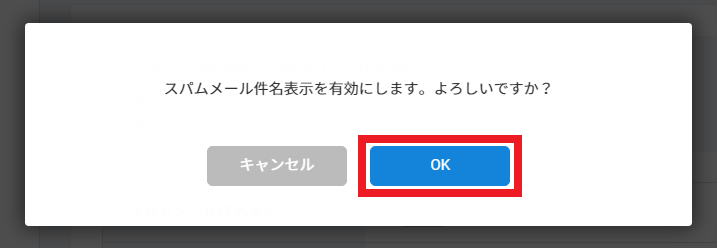 2 「スパムメール件名表示」の【ON/OFF】をクリックします