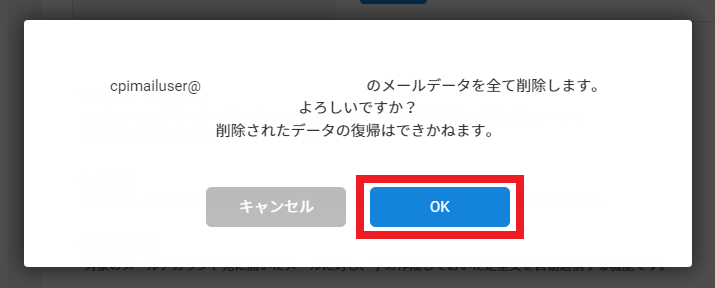 ■メールデータ削除中に該当メールアドレス宛にメールが送信された場合、メールソフト等で正しく受信できない可能性があります。削除処理完了までお待ちください。