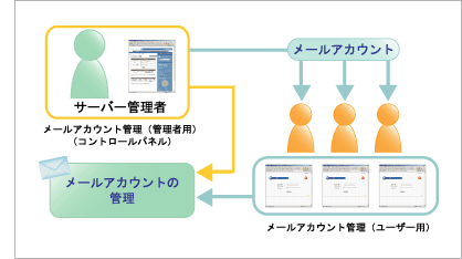 「メールアカウント(ユーザー用)」は、ユーザー自身でメールアカウントを管理する機能です。