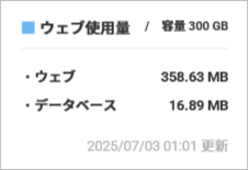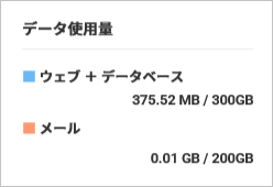 | ウェブ + データベース | Web データとデータベースの合計使用量です。 「実際に使用している容量」/「容量上限」の表示となっています。 |