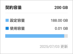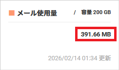 | 契約容量 | ご契約いただいている容量です。 オプションでメール容量追加を契約している場合、標準容量 200 GB と、追加で契約している容量の合算が表示されます。 |
