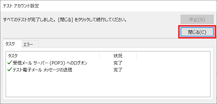 11 接続テストが完了したことを確認し、【閉じる】をクリックします